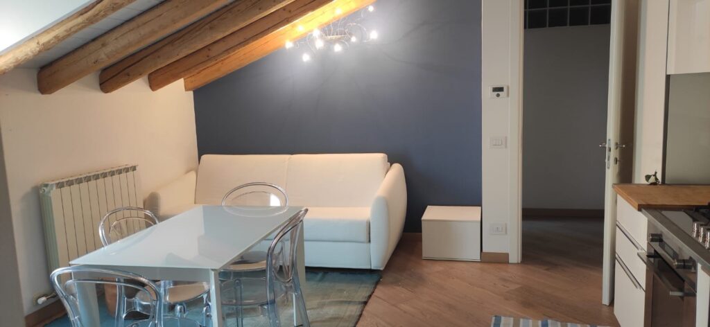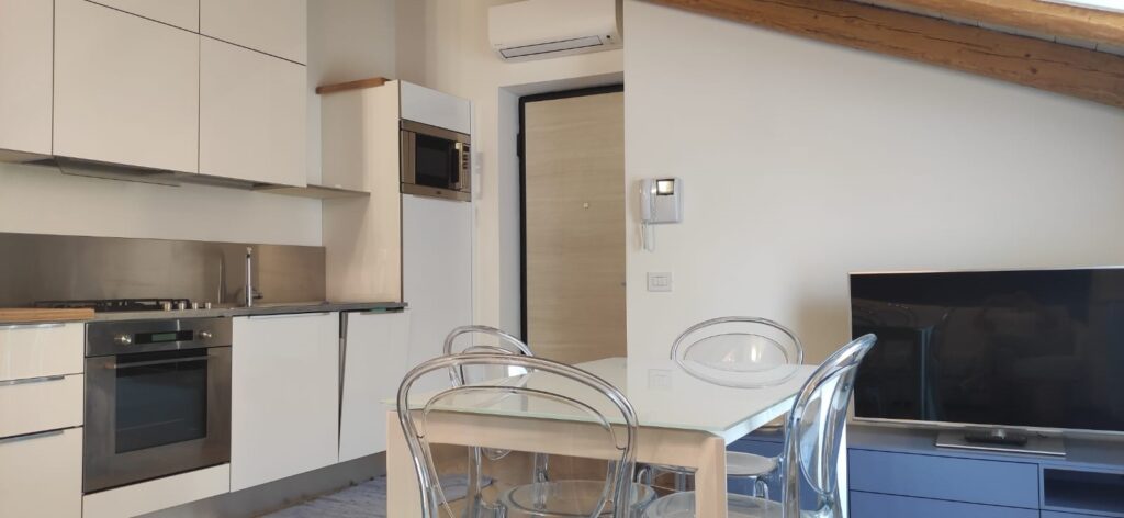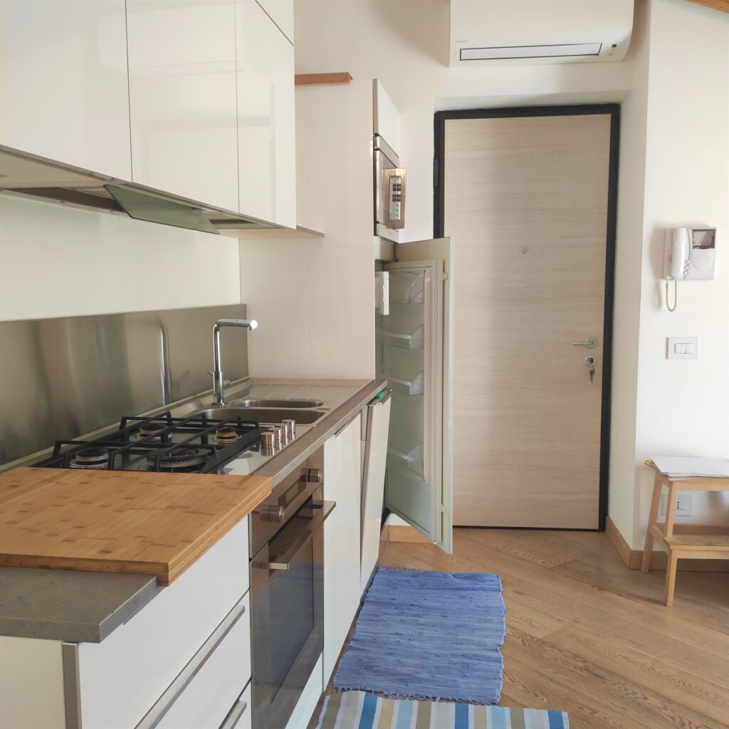 Delightful apartment composed of a living room with open kitchen, a double bedroom, a bathroom with shower and a large habitable terrace. Equipped with fine finishes, lift and air conditioning, fully furnished and equipped, including crockery, TV and washing machine. The apartment is located in Via Giulia 57, 4th floor and is well served by shops and public transport. Available from August for EUR 600 per month + EUR 100 expenses