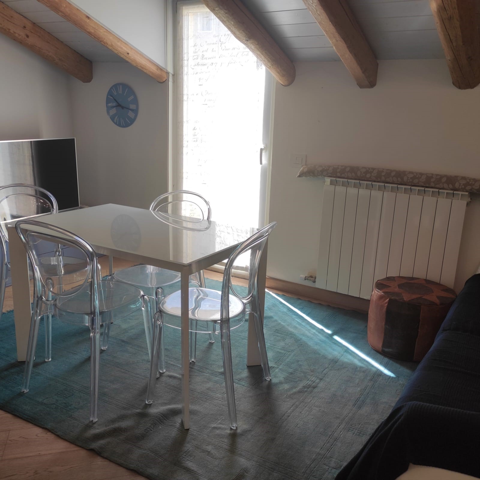 Delightful apartment composed of a living room with open kitchen, a double bedroom, a bathroom with shower and a large habitable terrace. Equipped with fine finishes, lift and air conditioning, fully furnished and equipped, including crockery, TV and washing machine. The apartment is located in Via Giulia 57, 4th floor and is well served by shops and public transport. Available from August for EUR 600 per month + EUR 100 expenses