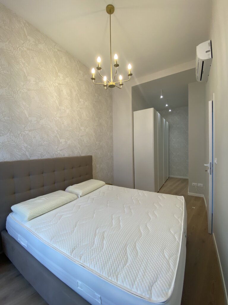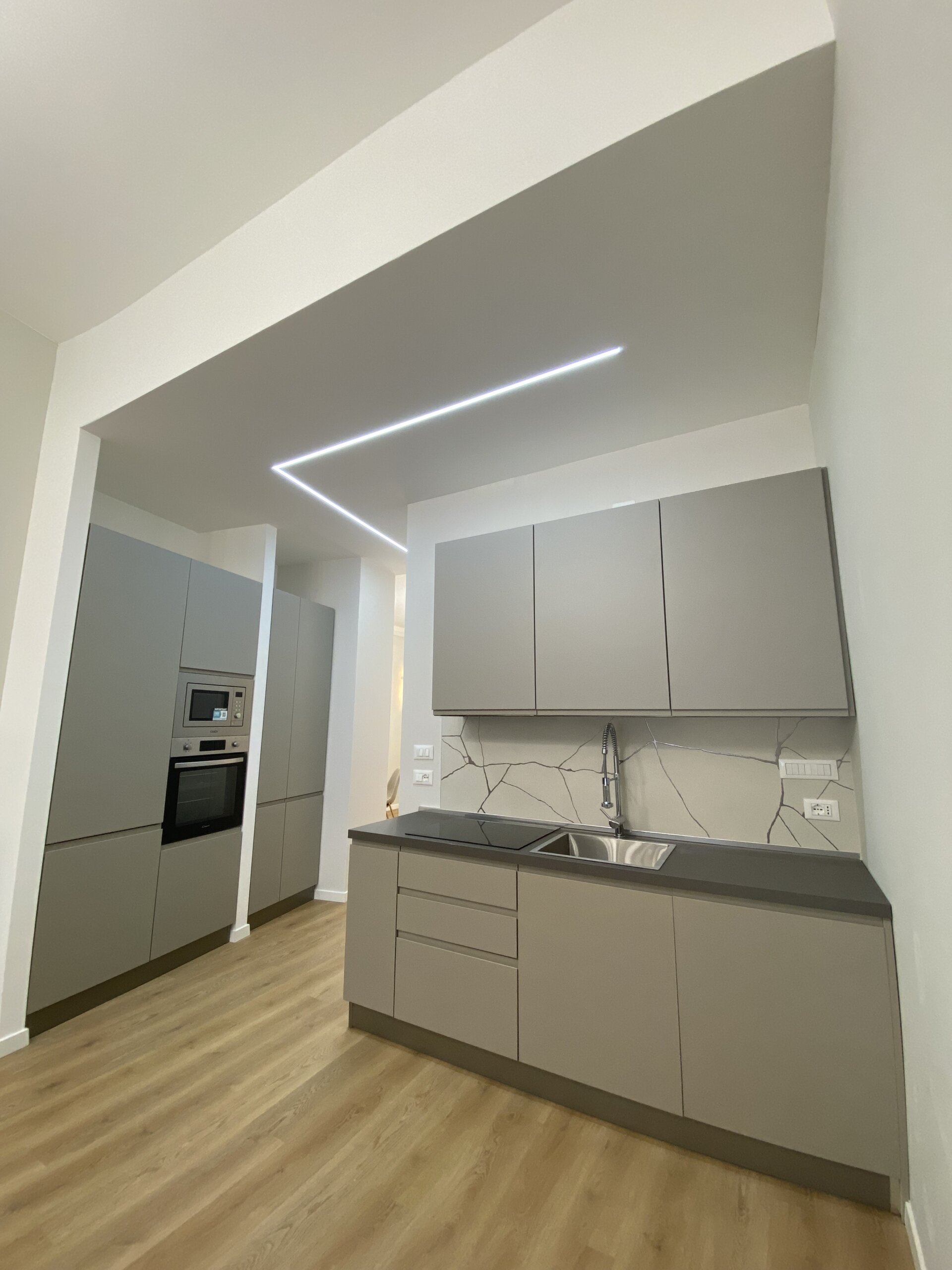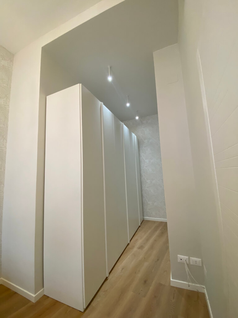 I am writing to offer for rent an apartment at Via Martiri della Libertà 12 in Trieste. The apartment is located in a listed building, equipped with an elevator and barrier-free. It comprises a large entrance hall, two full bathrooms, two storage rooms, a double bedroom with a walk-in closet, and a living area with a kitchenette. It features air conditioning, a washing machine, a dishwasher, a built-in microwave and oven, and an induction hob. Fully furnished and brand new, it measures 70 square meters. Available for short-term rental at €1,000 + expenses.