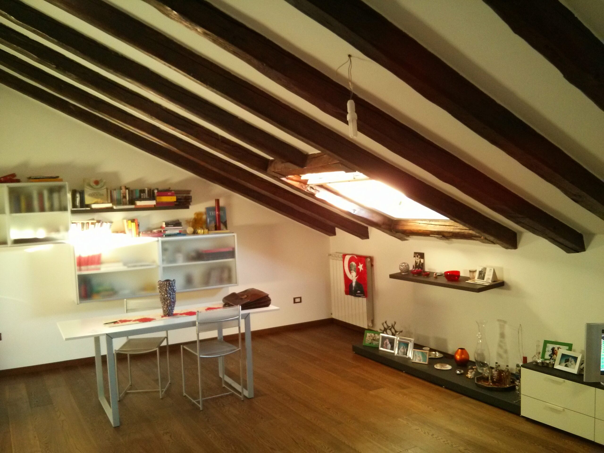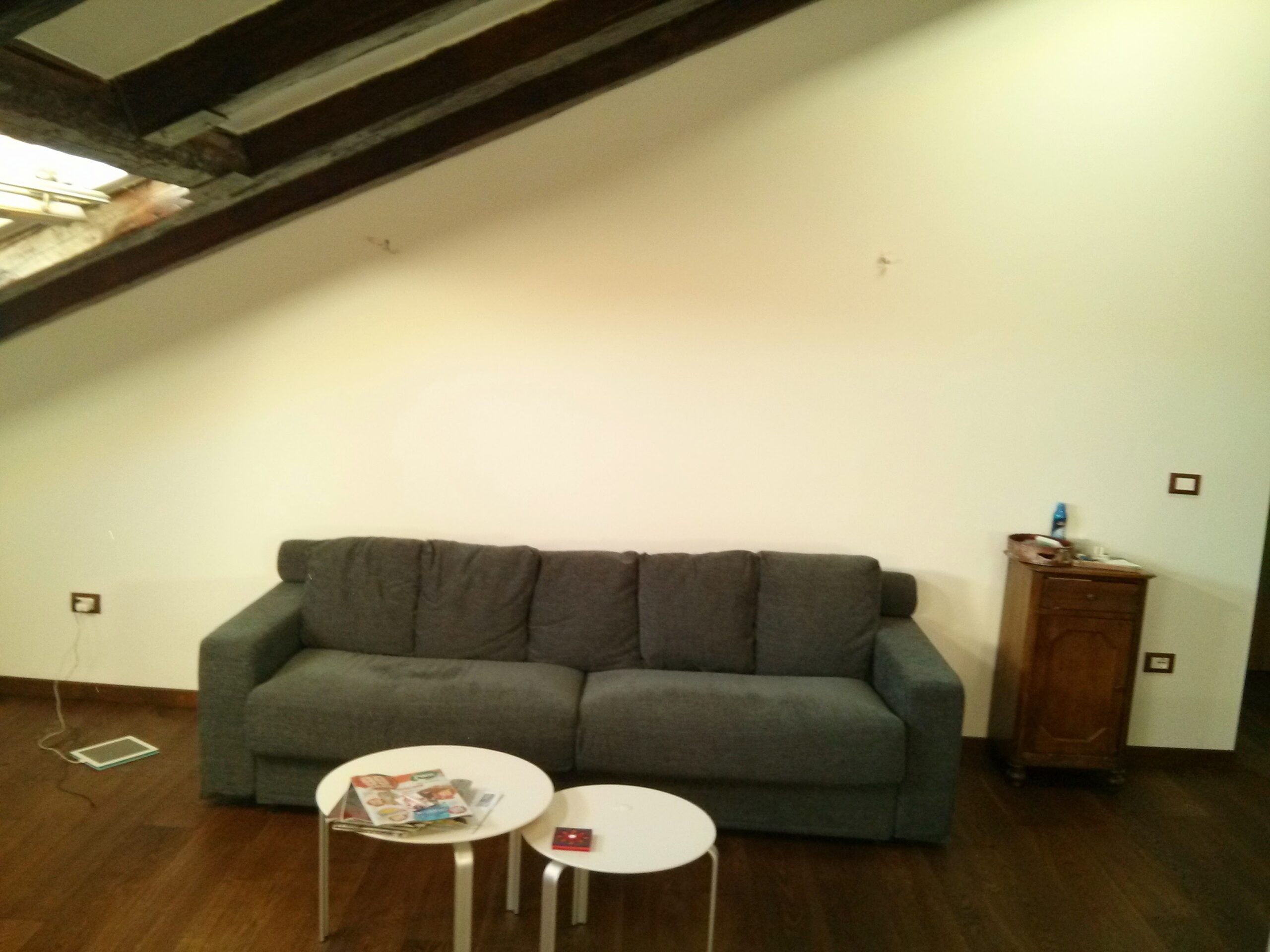 The apartment is a very large attic (140 m2), very bright, perfectly furnished (wooden floor, TV, Internet Wi-Fi, complete bathroom/kitchen accessories, washing machine, 2 refrigerators, dishwasher, iron with ironing table), equipped with air conditioning, own heating system, 2 bedrooms (one with walk-in closet), 2 full equiped bathrooms, 1 laundry room, 1 closet, separate kitchen, really huge living room. It is located on the 5th floor (currently without elevetor but already being designed for installation). It is also possible to have a parking space just behind the building. Request: 850 EUR/month for the apartment plus water/electricity/gas costs. One monthly payment as deposit. Eventual 100 EUR/month for the parking space. Contacts: Valentino Pediroda email: pediroda@units.it