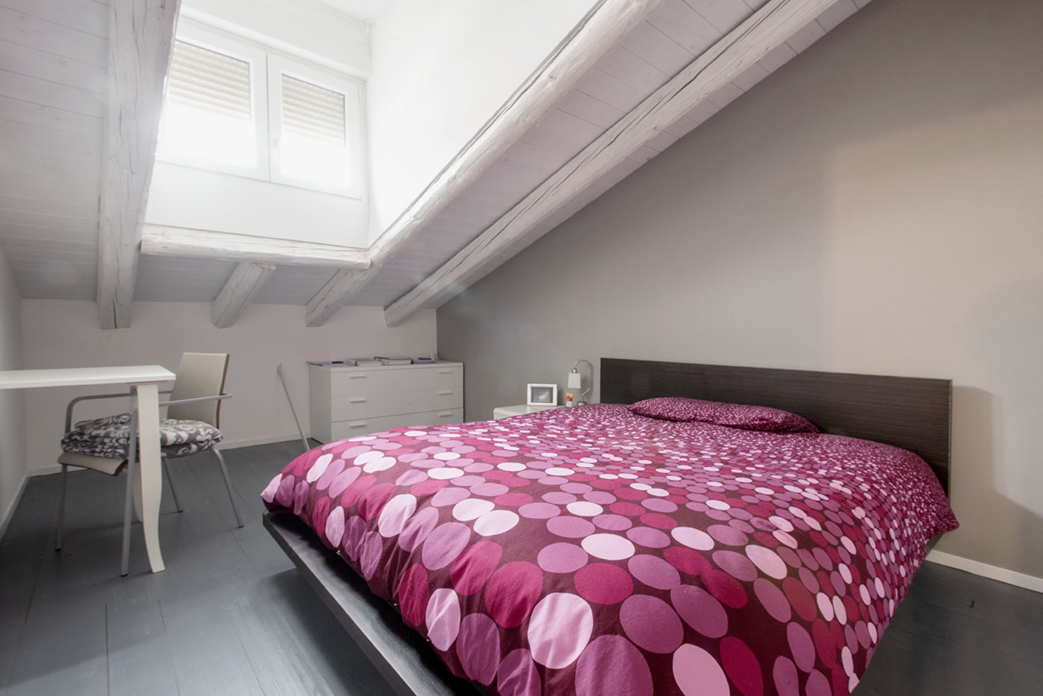 Affittasi bellissimo appartamento mansardato primo ingresso, totalmente arredato ed accessoriato, sito al terzo piano di uno stabile completamente restaurato a fine 2017 e dotato di ascensore, composto da zona giorno con angolo cottura, due camere matrimoniali di cui una con bagno privato in camera e un bagno con doccia.