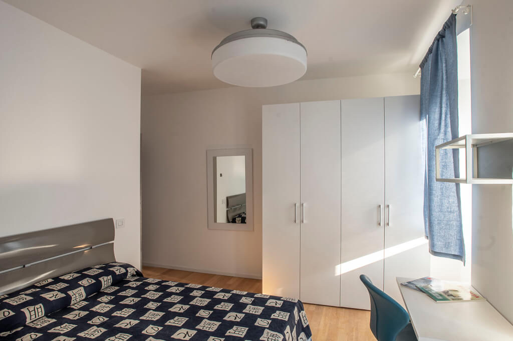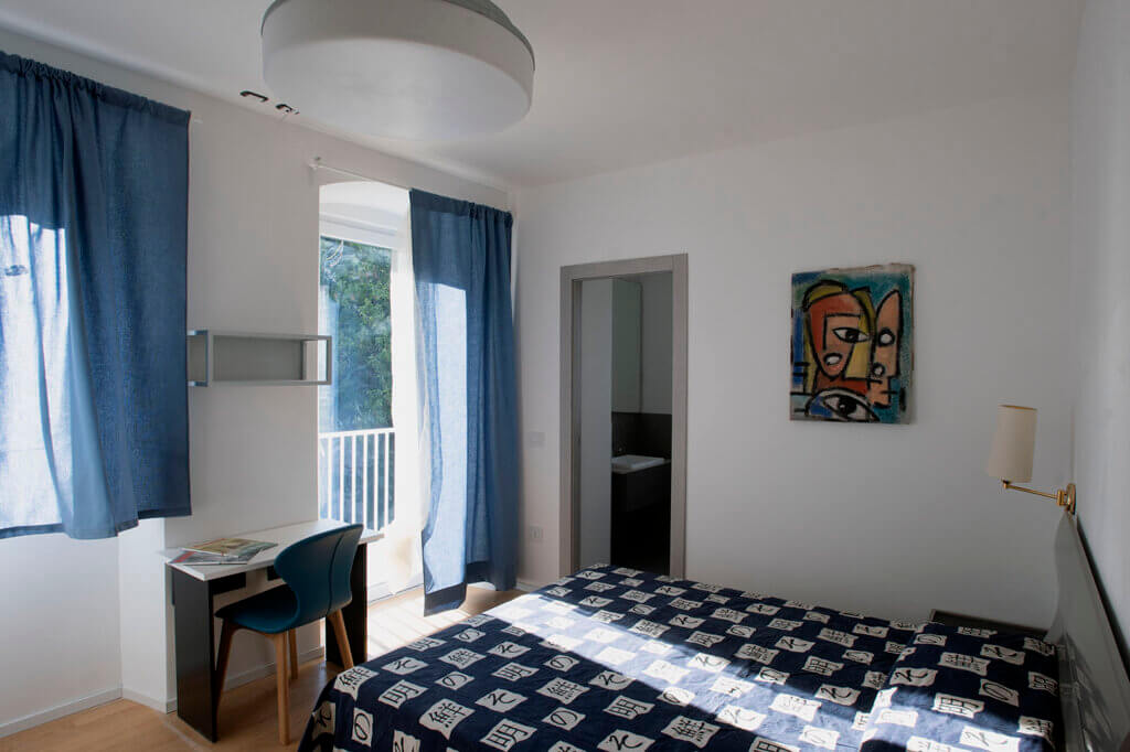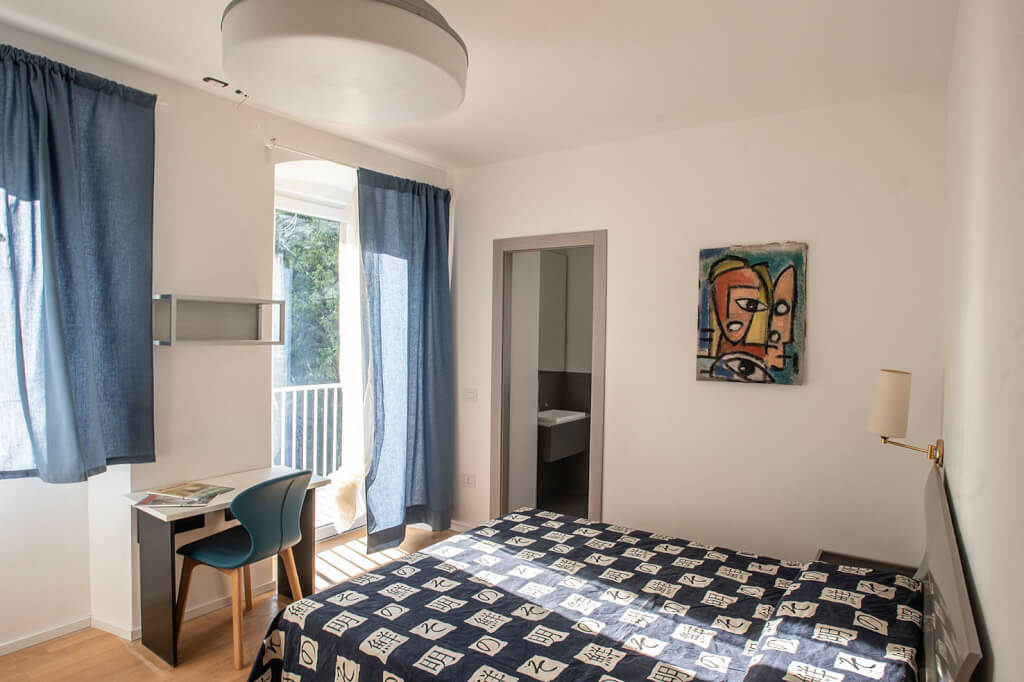 In Largo Barriera 16, on the fourth floor with elevator in a recently renovated building, we offer for rent a large double bedroom with a private terrace and a full ensuite bathroom with a window.
