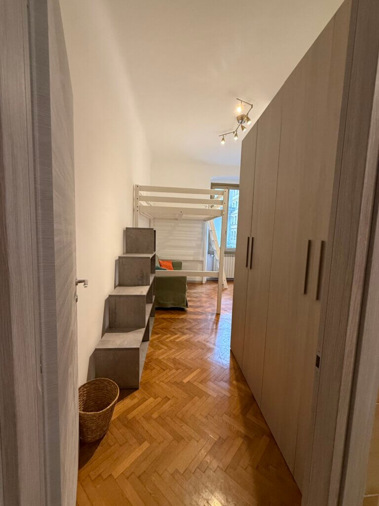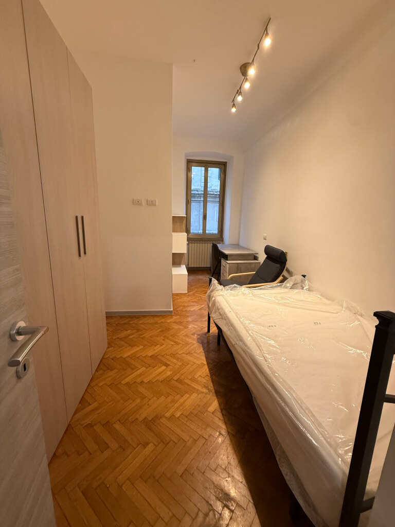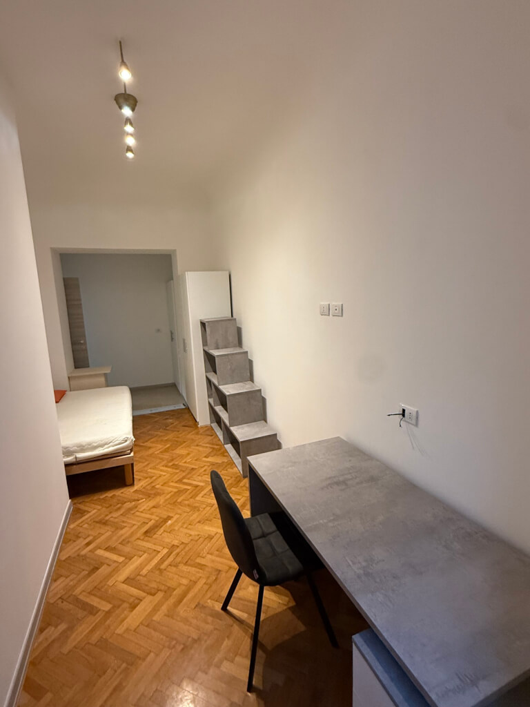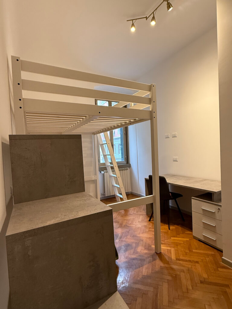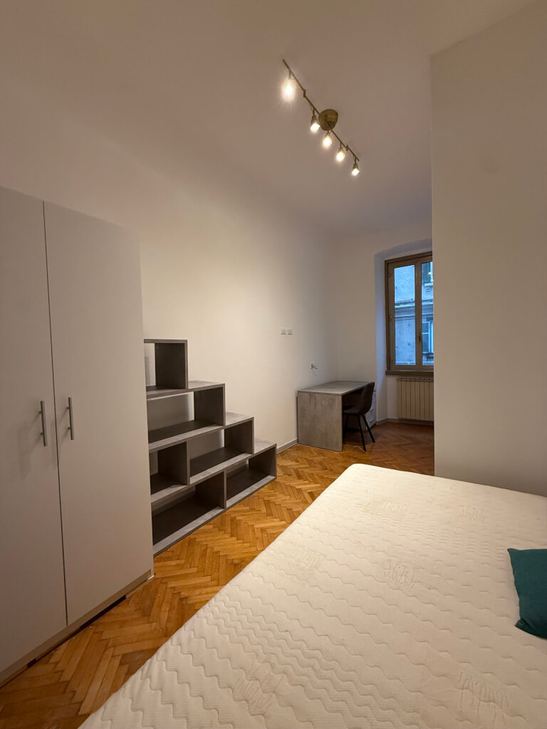 No agency. Five spacious, first-entrance rooms between the train station and Via Udine (bus line 38) in a 140 sq m apartment at Via Boccaccio 12.