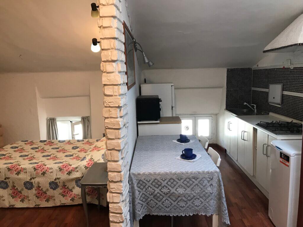 L’appartamento è composto da una stanza con letto matrimoniale e un divano, bagno e cucina.