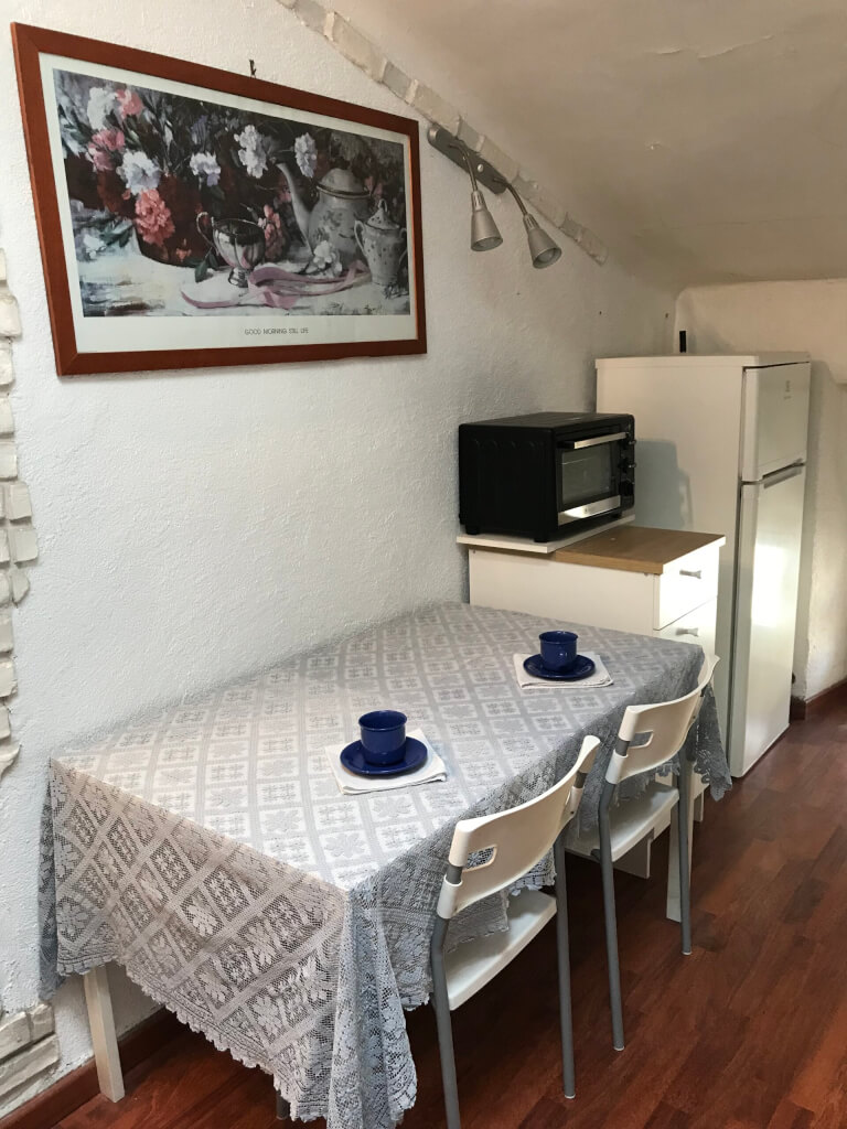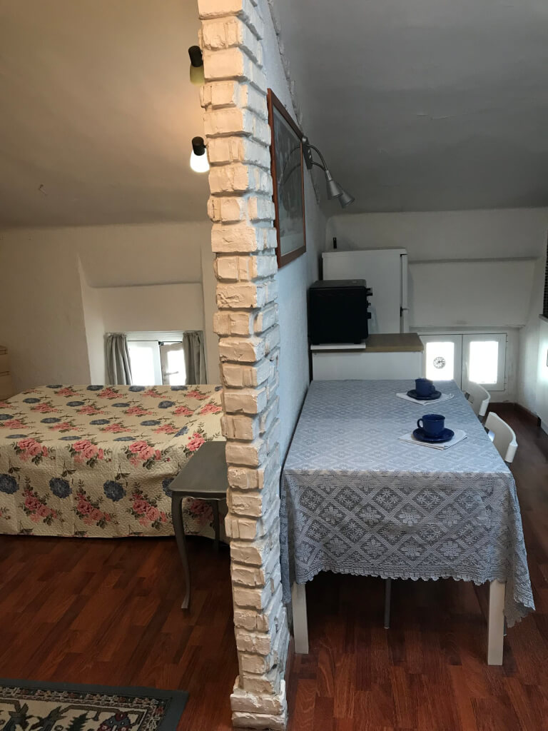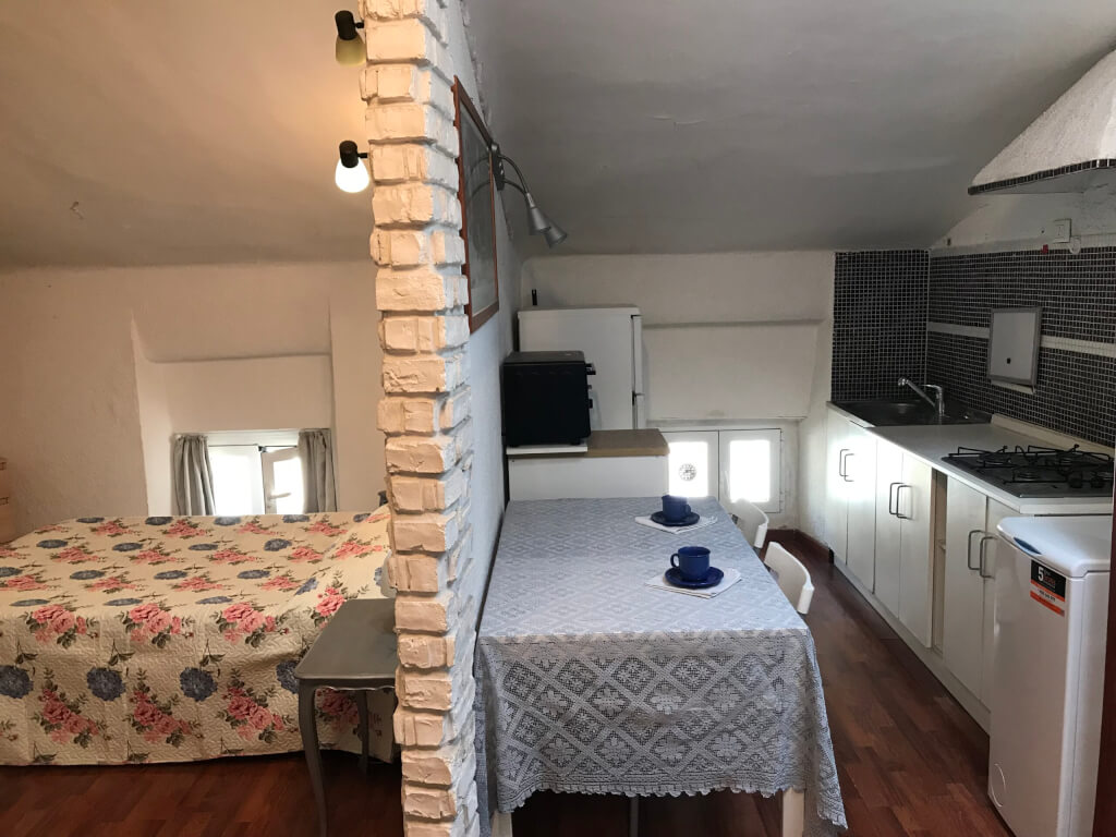 L’appartamento è composto da una stanza con letto matrimoniale e un divano, bagno e cucina.
